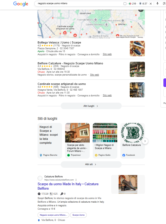 - Target Local SEO: posizionamento per la query “negozio scarpe uomo Milano”