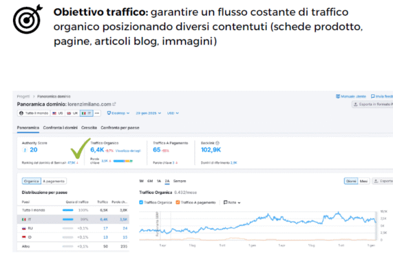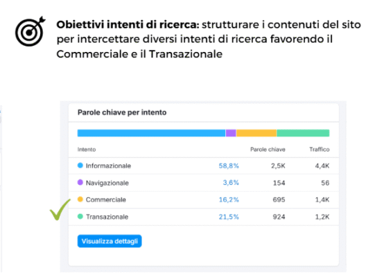 Obiettivi: Traffico organico + intercettare intenti commerciali e transazionali