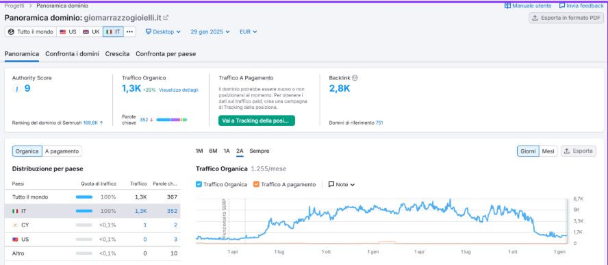 - Traffico organico in costante crescita grazie al blog e alla SEO tecnica