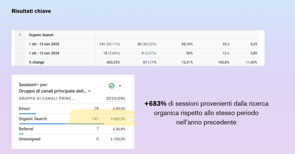 L’obiettivo era iposizionare il sito web per aumentare la visibilità organica, generare più traffico qualificato e incrementare le prenotazioni dei servizi direttamente online.