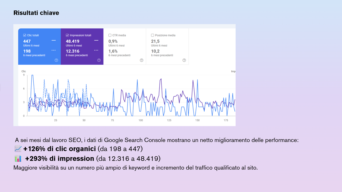 Obiettivi: Posizionare il sito sul mercato con parole chiave competitive e aumentare il traffico organico in modo costante